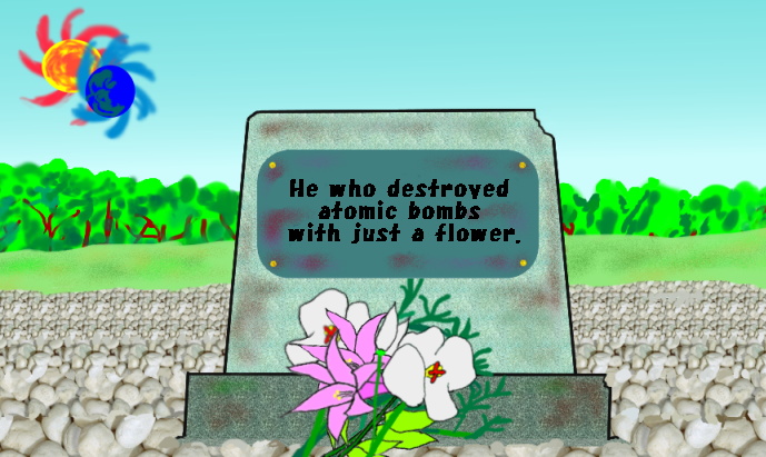 | The name of the first president who had offered a flower to the victims of the atomic bomb had become legendary, as his simple gesture had led to the achievement of global peace. Even after a thousand years his grave is covered with flowers. |