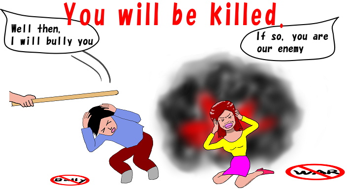 | Therefore it is easy to support bullying or wars, but is very hard to stop them. |